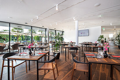 Das Restaurant Bulls‘ Corner verwöhnt von morgens bis abends: Angefangen vom köstlichen à la carte Frühstück unter der Woche, über das vielfältige Frühstücksbuffet jeden Samstag bis hin zum dreigängigen Business-Lunch oder einem schmackhaften Abendessen mit regelmäßig wechselnden Saisonempfehlungen ¬– im Westtrakt der Red Bull Arena ist für alle etwas dabei!