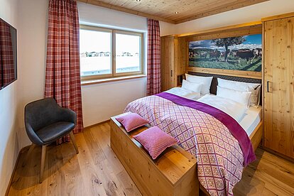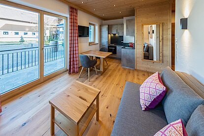 Ferien & Wohnung: Unser hochwertigstes heimisches Holz vom Tischler mit viel Liebe zum Detail ausgeführten Apartments befinden sich im Anbau, inmitten des Bio-Bauernhofverbundes. So genießen Sie höchstmöglichen Komfort in einem neuen Gebäude, spüren um sich herum aber den Charme des alten, ursprünglichen Bauernhofes. Sie können zwischen Apartments in verschiedenen Größen wählen – von 40 m2 bis 90 m2. Je nachdem, ob Sie allein oder zu zweit Zeit bei uns verbringen oder ob Sie mit der ganzen Familie nach Salzburg kommen möchten.